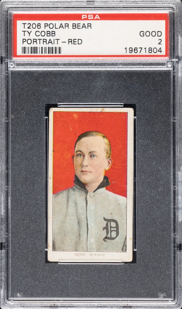 Lot # 4: 1909-1911 T206 White Border Ty Cobb Portrait Red Background PSA GOOD 2 - Polar Bear Back