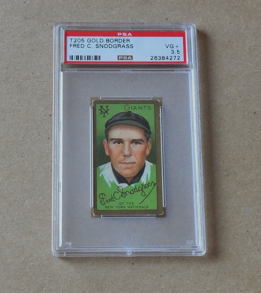 1911 T205 Gold Border BB cd.; Fred C. Snodgrass, Giants; Cycle back; PSA graded