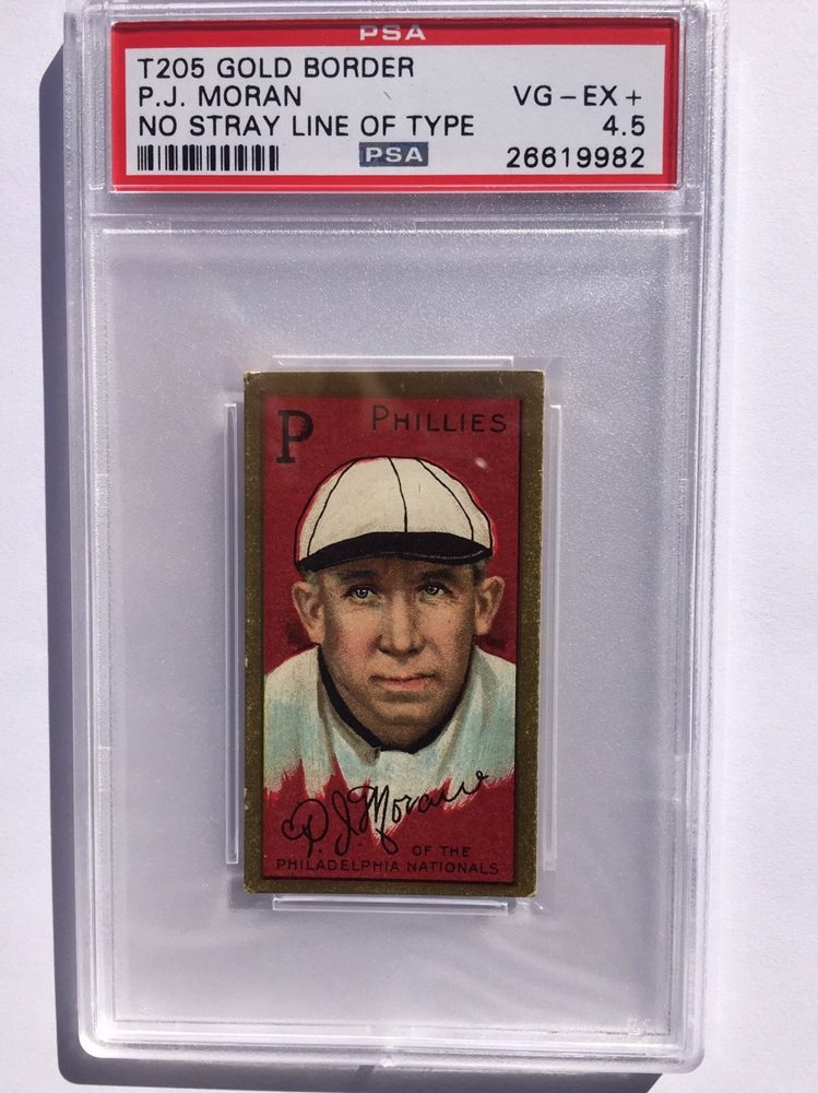 1911 t205 baseball card P.J. Moran (no stray line of type) PSA VF-EX+ 4.5