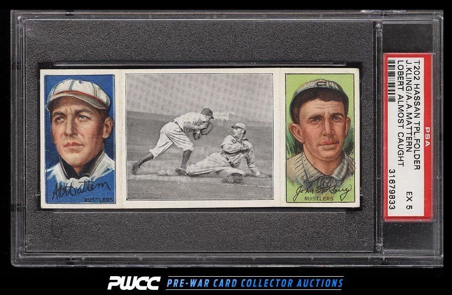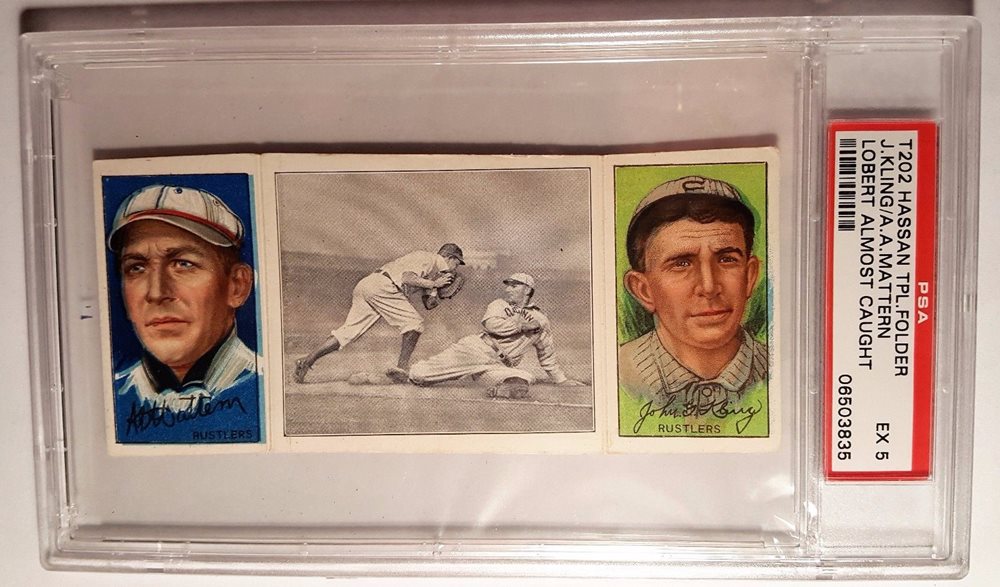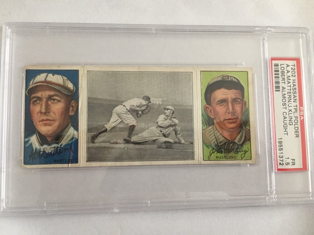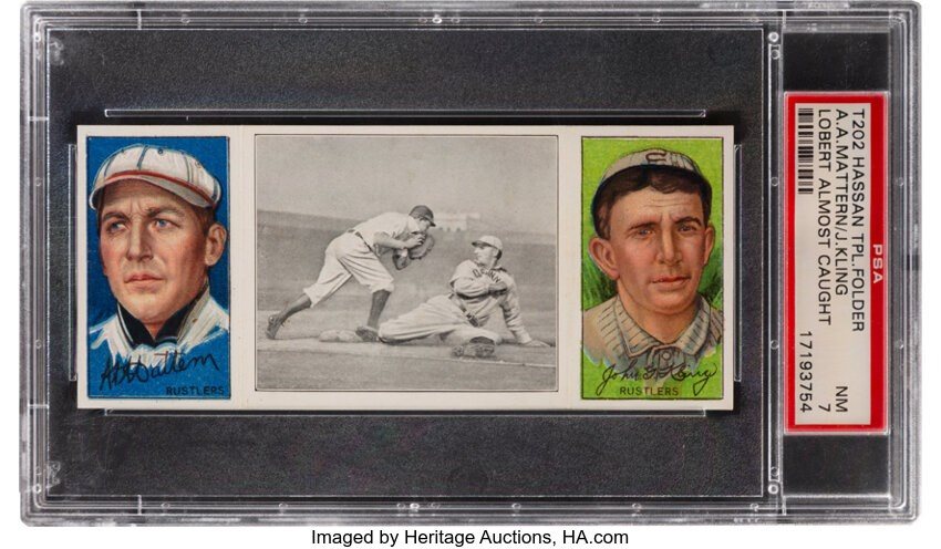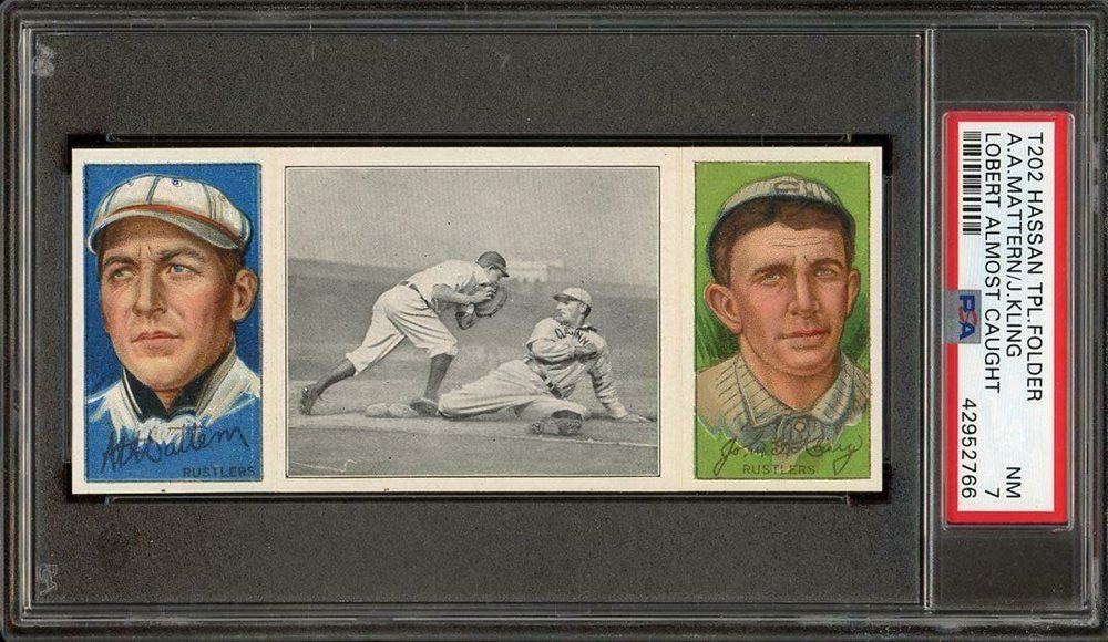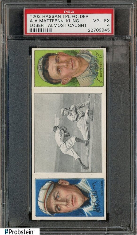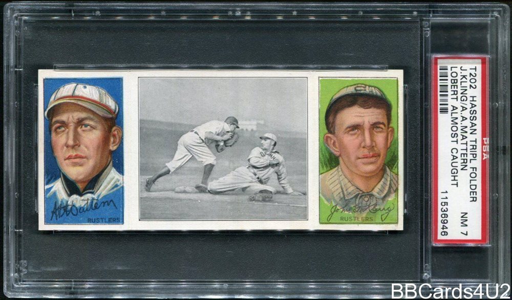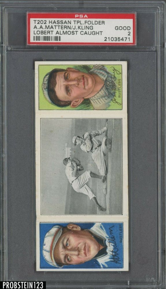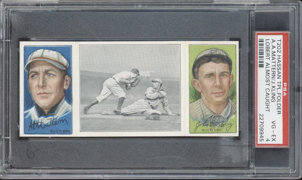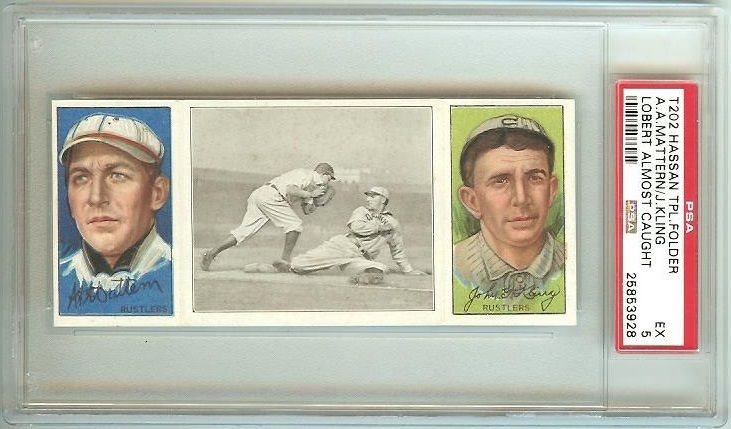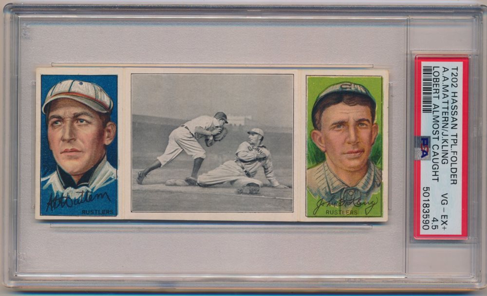 1912 T202 HASSAN TRIPLE FOLDER | LOBERT ALMOST CAUGHT