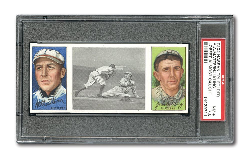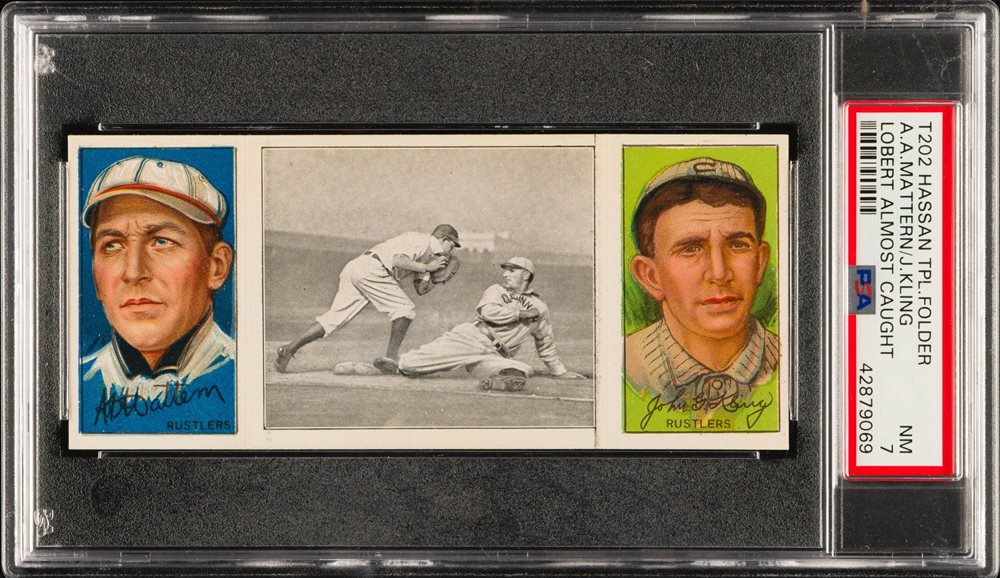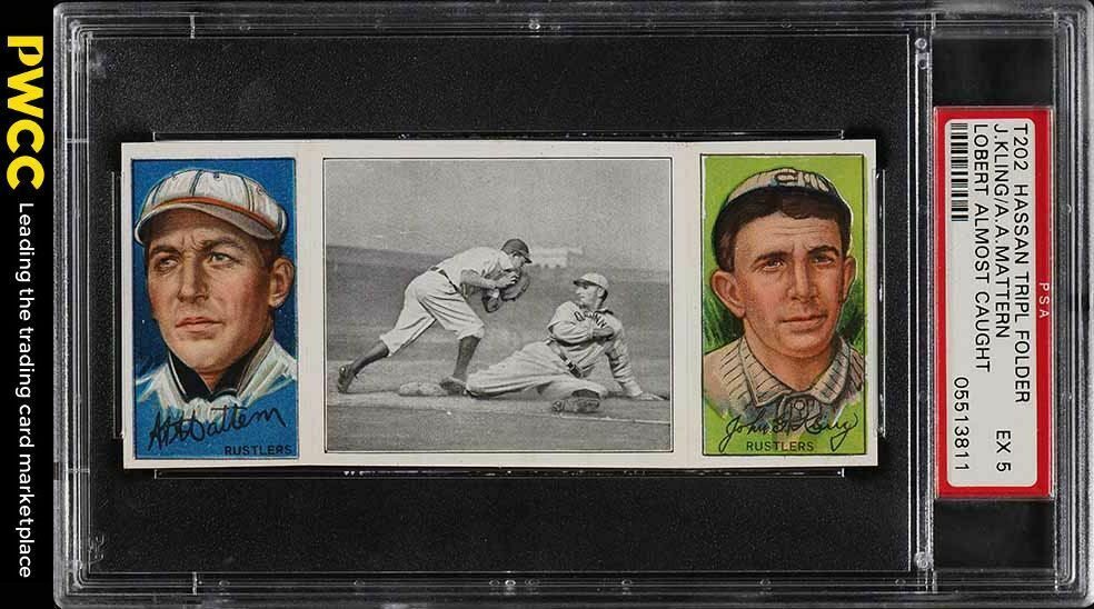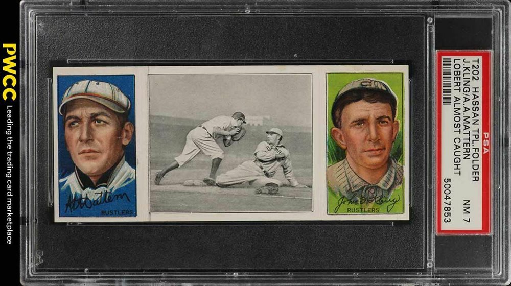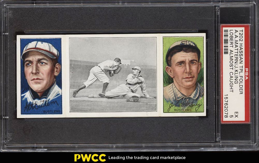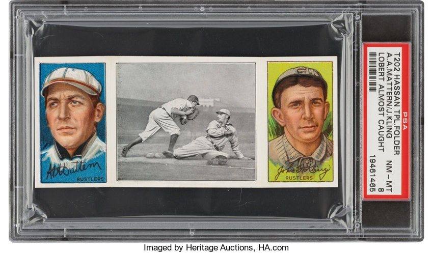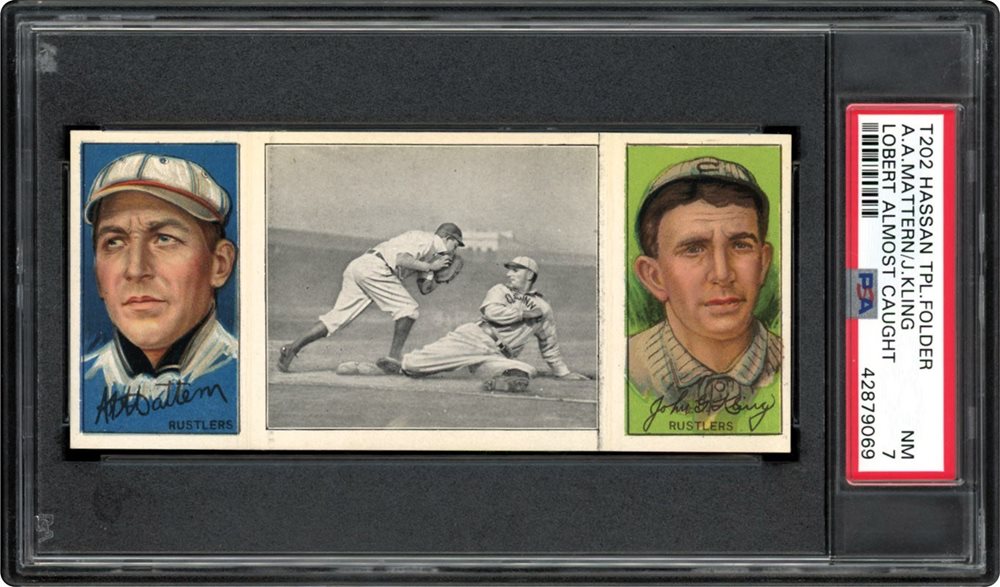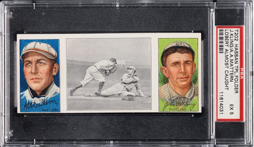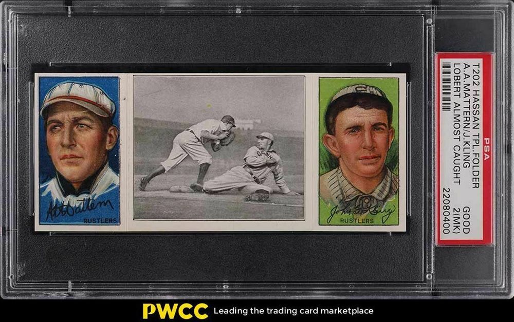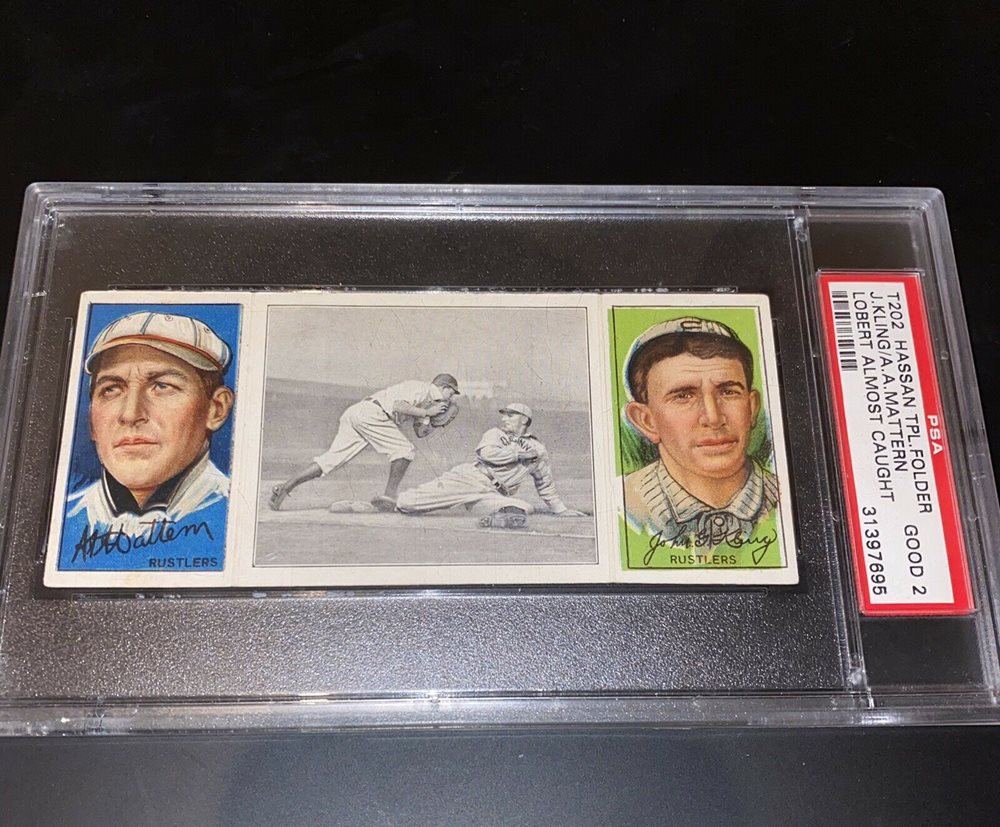 1912 T202 HASSAN TRIPLE FOLDER | LOBERT ALMOST CAUGHT