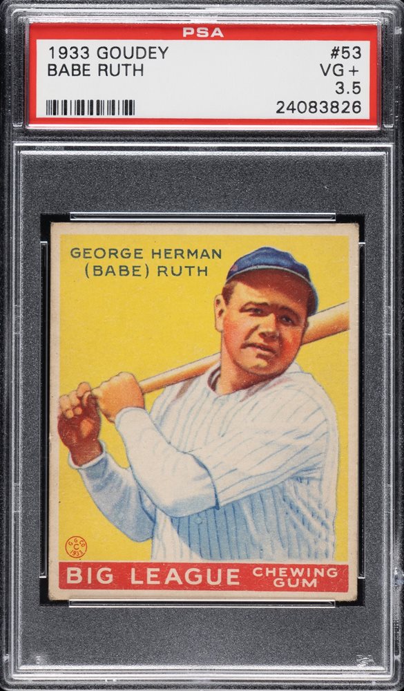 Lot #  743:  1933 R319 Goudey #53 Babe Ruth PSA VG+ 3.5