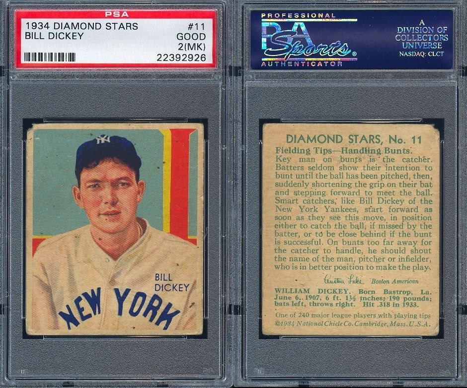 1934 1935 DIAMOND STARS #11 BILL DICKEY PSA 2 MK (2926)