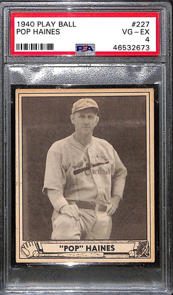 Lot #384: 1940 Play Ball Jesse "Pop" Haines #227 Graded PSA 4 (VG-EX)