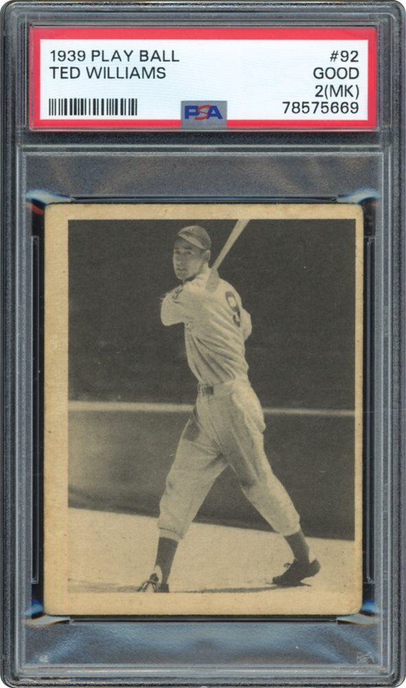 Lot # 837: 1939 Play Ball #92 Ted Williams Rookie PSA 2 (MK) GOOD