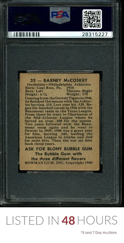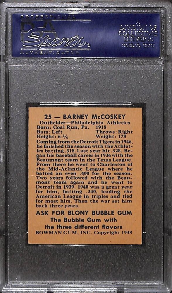 Auction Prices Realized Baseball Cards 1948 BOWMAN Barney McCoskey