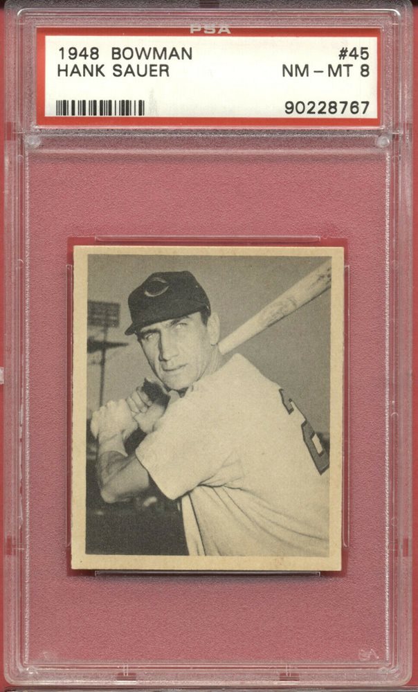 1948 Bowman #45 Hank Sauer RC -- PSA 8 -- Cincinnati REDS rookie centered