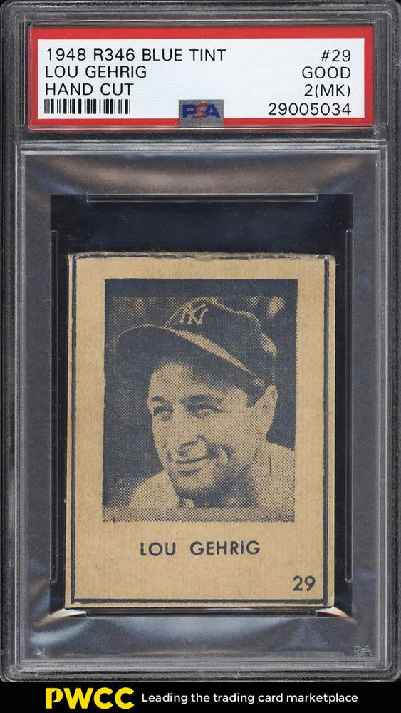 1948 R346 Blue Tint Lou Gehrig #29 PSA 2(mk) GD (PWCC)