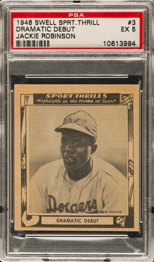 Lot # 1110: 1948 Swell Gum Sport Thrills #3 Jackie Robinson PSA EX 5