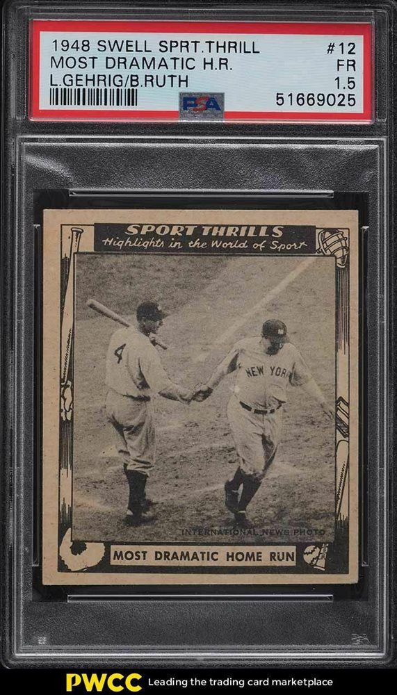 1948 Swell Sports Thrills Most Dramatic HR Lou Gehrig Babe Ruth #12 PSA 1.5 FR