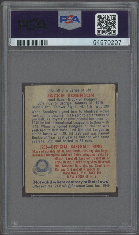 1949 Bowman #50 Jackie Robinson Brooklyn Dodgers HOF PSA 2 GOOD " ICONIC CARD "