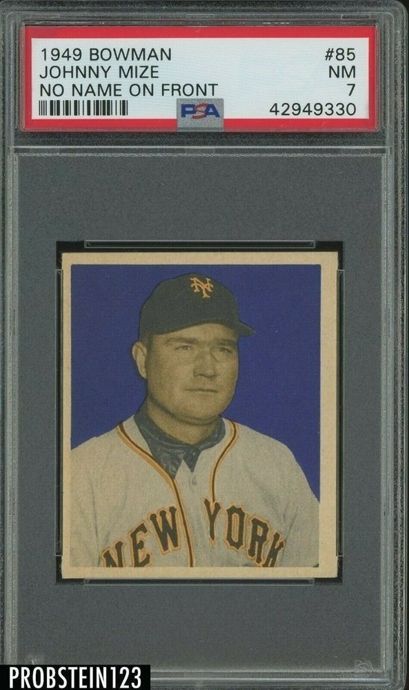 1949 Bowman #85 Johnny Mize New York Giants HOF No Name On Front PSA 7 NM