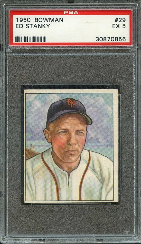 1950 BOWMAN #29 ED STANKY VINTAGE NEW YORK GIANTS PSA 5