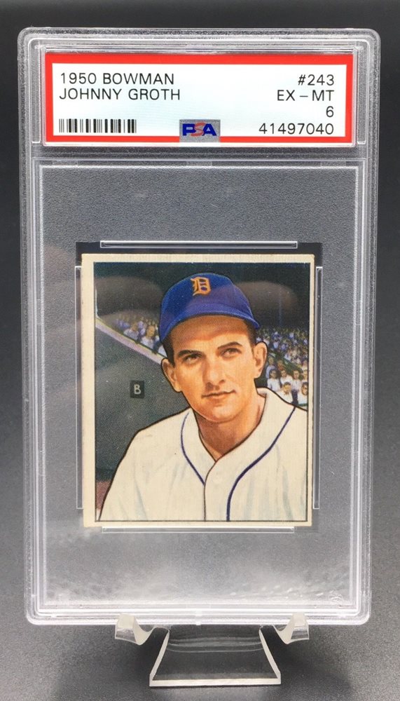 1950 BOWMAN JOHNNY GROTH PSA EX-MT 6 #243 DETROIT TIGERS REGISTRY SET BREAK