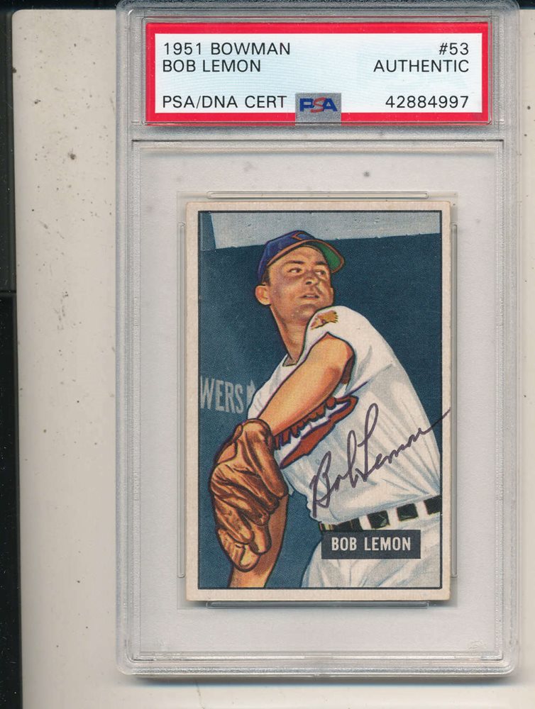 1951 Bowman card #53 Bob Lemon Indians signed psa/dna