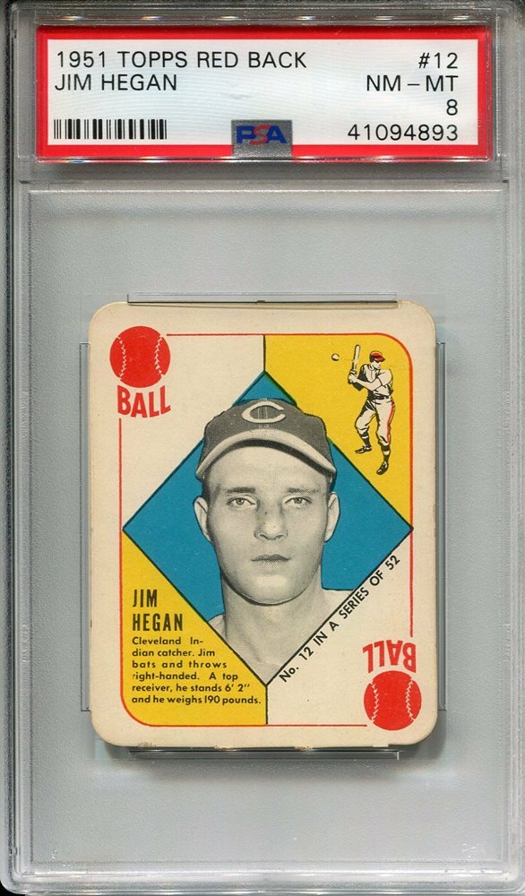 1951 Topps Red Back #12 Jim Hegan PSA 8 NM-MT Cleveland Indians