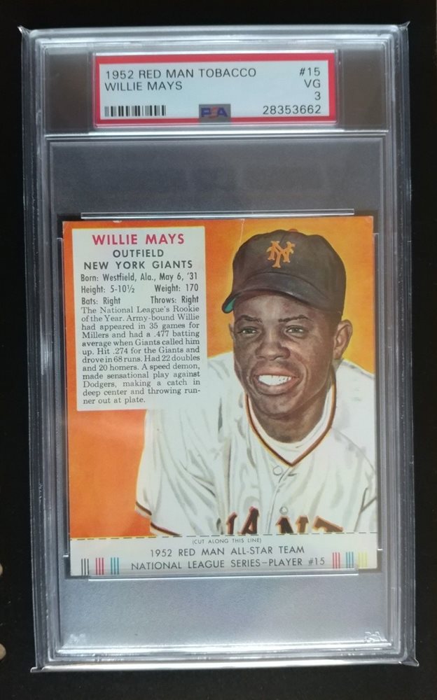 1952 Red Man Tobacco w/Tab #15 Willie Mays Giants PSA 3 VG HOF