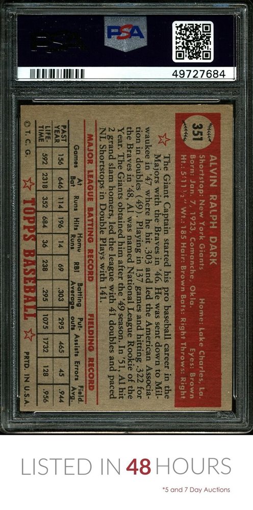 Auction Prices Realized Baseball Cards 1952 TOPPS Al Dark