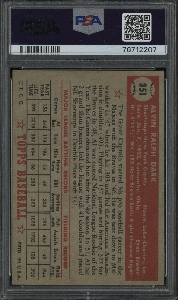 1952 Topps #351 Al Dark New York Giants HIGH# PSA 5 EX