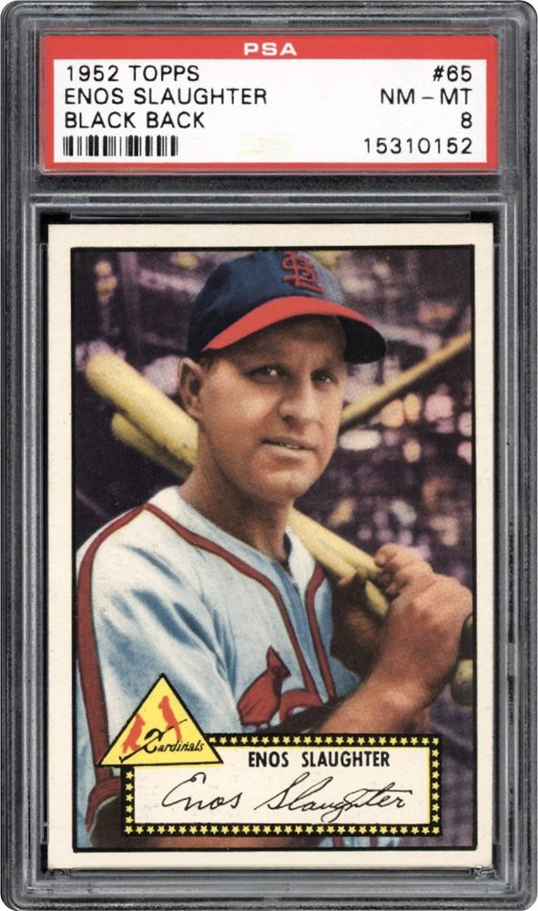Lot # 470: 1952 Topps #65 Enos Slaughter Black Back PSA 8 NM-MT