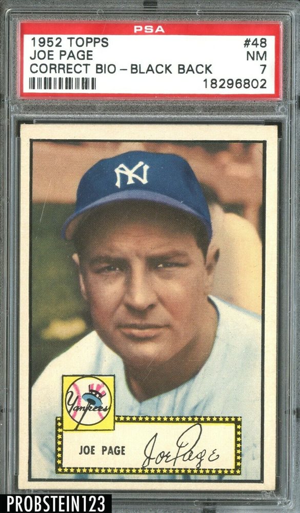 1952 Topps SETBREAK #48 Joe Page Yankees PSA 7 NM " CORRECT BIO-BLACK BACK "