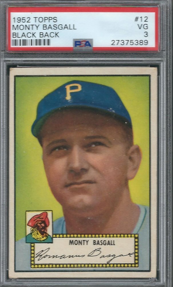 1952 TOPPS 12 MONTY BASGALL BLACK BACK PSA 3 VG