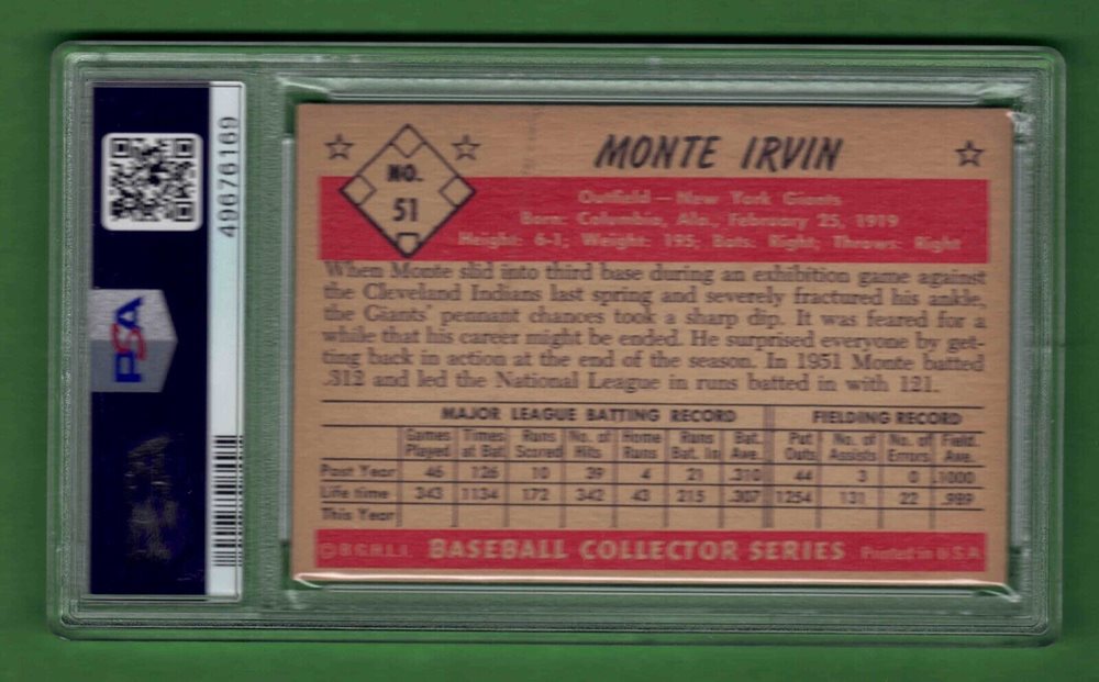 1953 Bowman #51 MONTE IRVIN New York Giants PSA EX 5