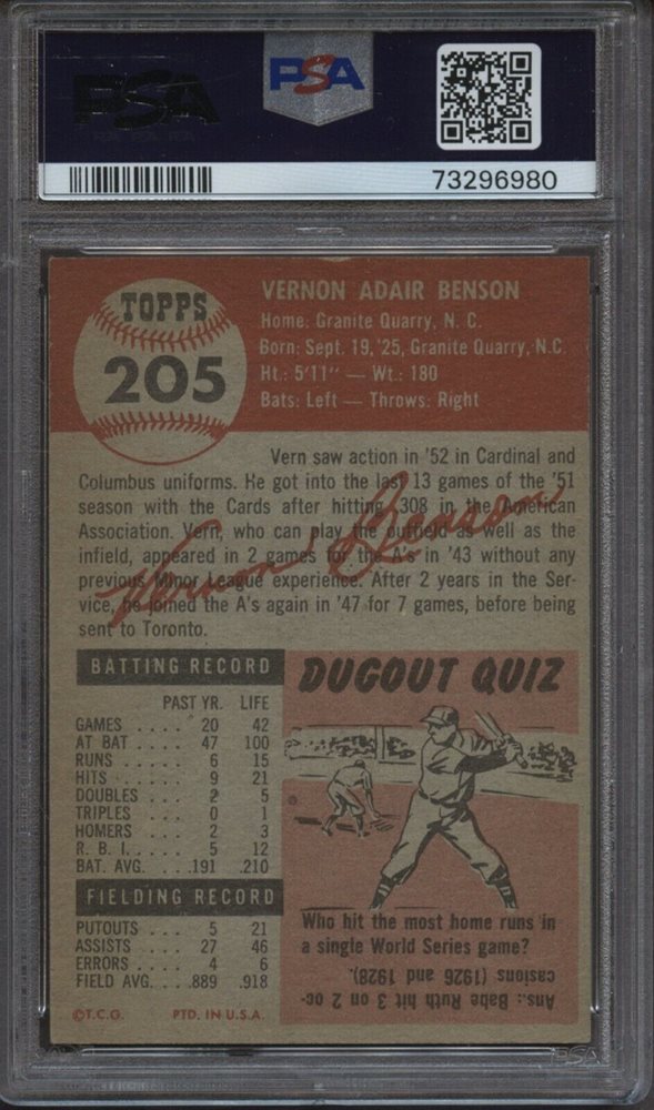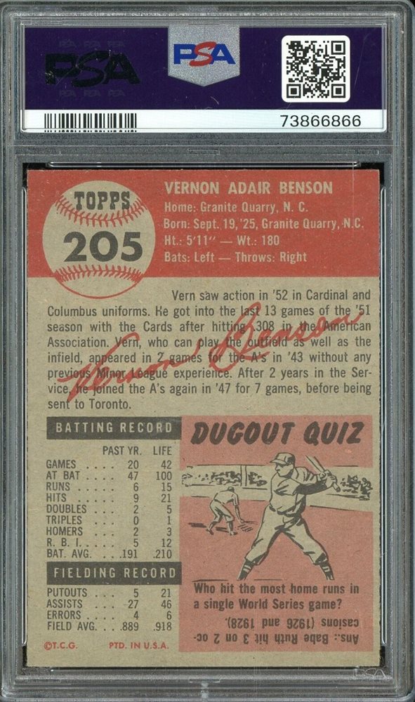 Auction Prices Realized Baseball Cards 1953 TOPPS Vern Benson