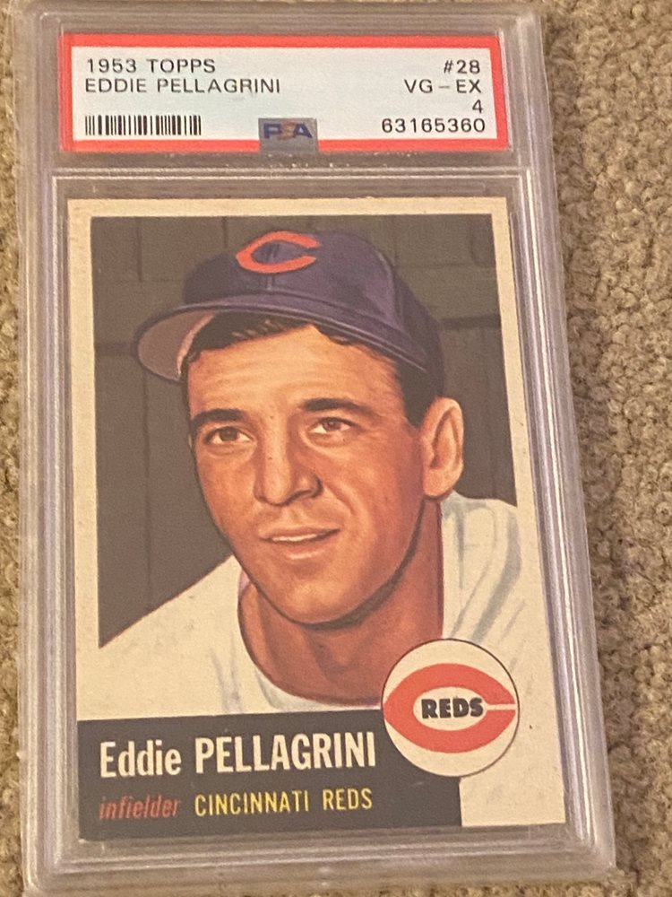 1953 TOPPS #28 EDDIE PELLAGRINI CINCINNATI REDS REDLEGS PSA 4 VG - EX