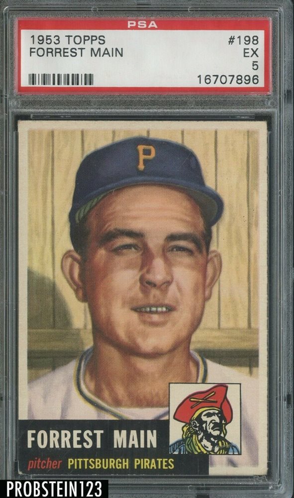 1953 Topps SETBREAK #198 Forrest Main Pittsburgh Pirates PSA 5 EX