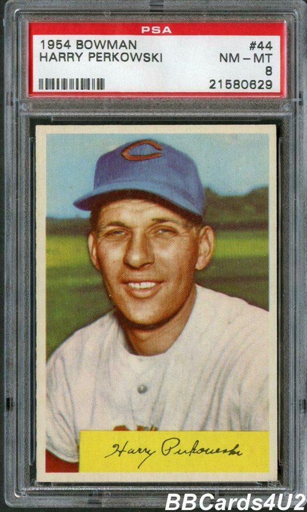 1954 Bowman #44 HARRY PERKOWSKI PSA 8 NM-MT Reds