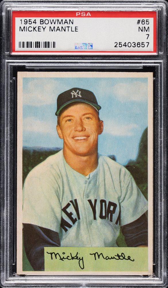 Lot # 950: 1954 Bowman #65 Mickey Mantle PSA NM 7