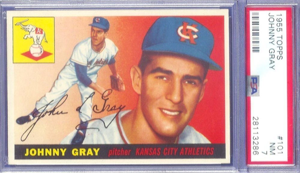 1955 Topps #101 Johnny Gray PSA 7 NM Kansas City Athletics BB Card