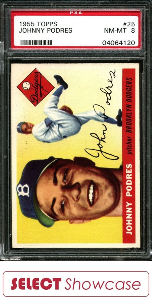 1955 TOPPS #25 JOHNNY PODRES DODGERS PSA 8 SET BREAK