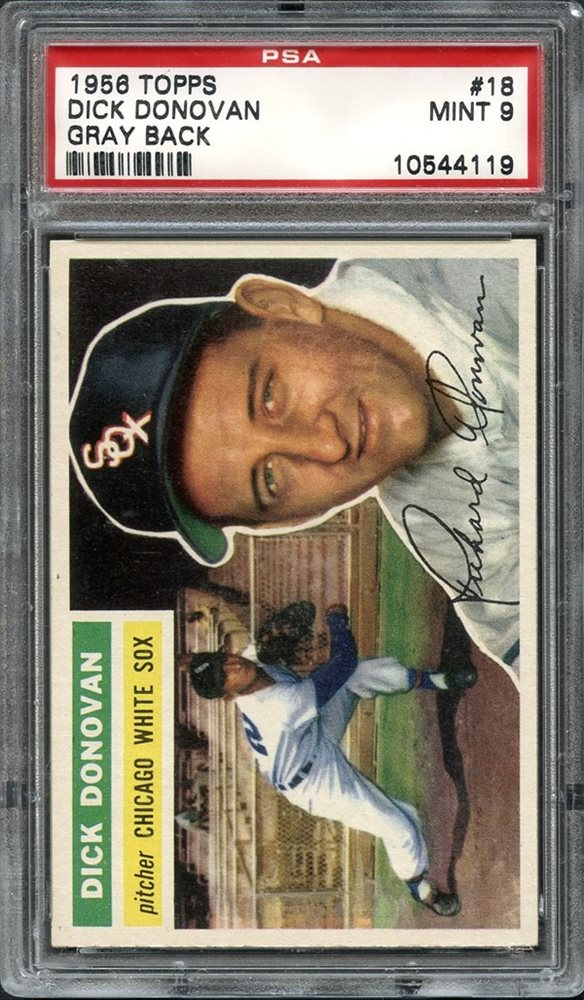 1956 Topps #18 Dick Donovan Gray Back PSA 9 MINT