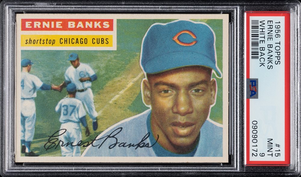 Lot # 1292: 1956 Topps #15 Ernie Banks White Back PSA MINT 9 - Highest Graded!