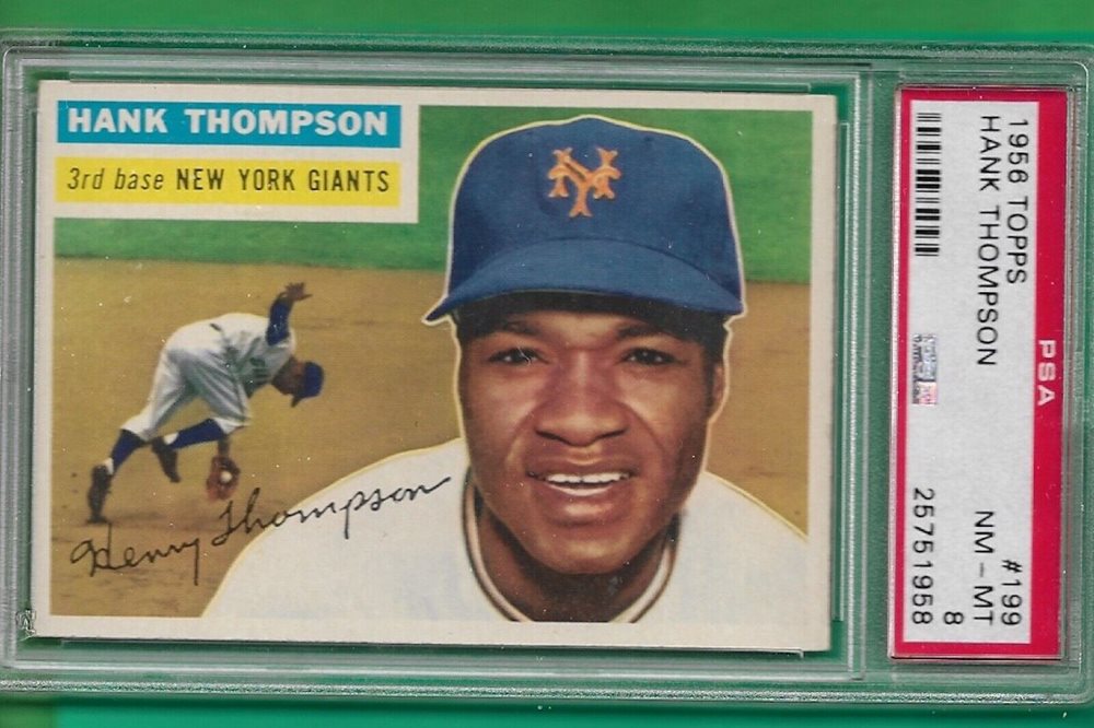 1956 TOPPS VINTAGE BASEBALL BREAK HANK THOMPSON #199 NEW YORK GIANTS PSA 8