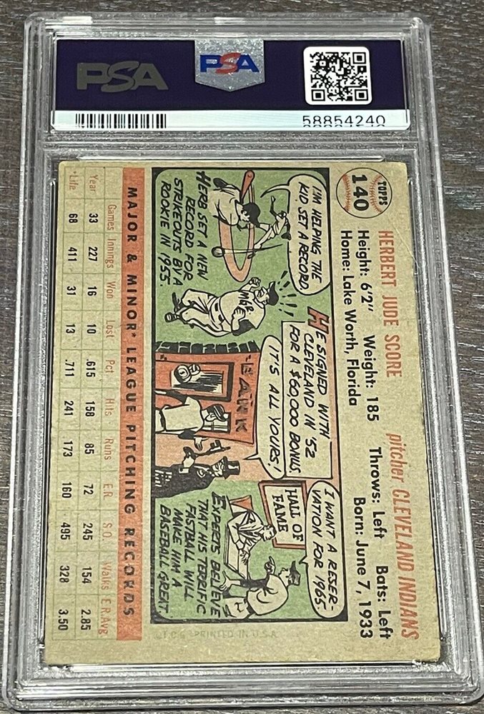 1956 Topps Herb Score RC #140 *Cleveland Indians* Rookie Card *PSA 3