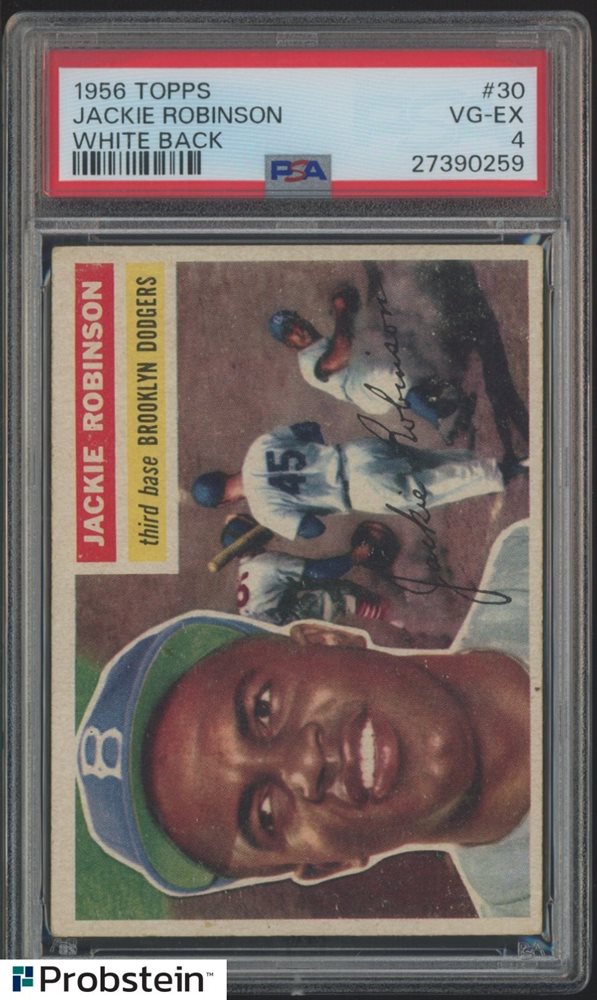 1956 Topps #30 Jackie Robinson Brooklyn Dodgers HOF White Back PSA 4 VG-EX