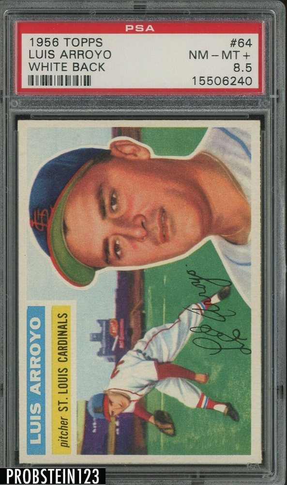 1956 Topps #64 White Back Luis Arroyo St. Louis Cardinals PSA 8.5 NM-MT+