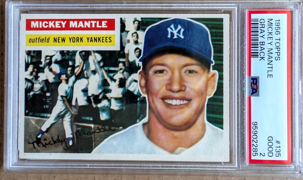 1956 Topps #135 Mickey Mantle - Gray Back - PSA 2 Good