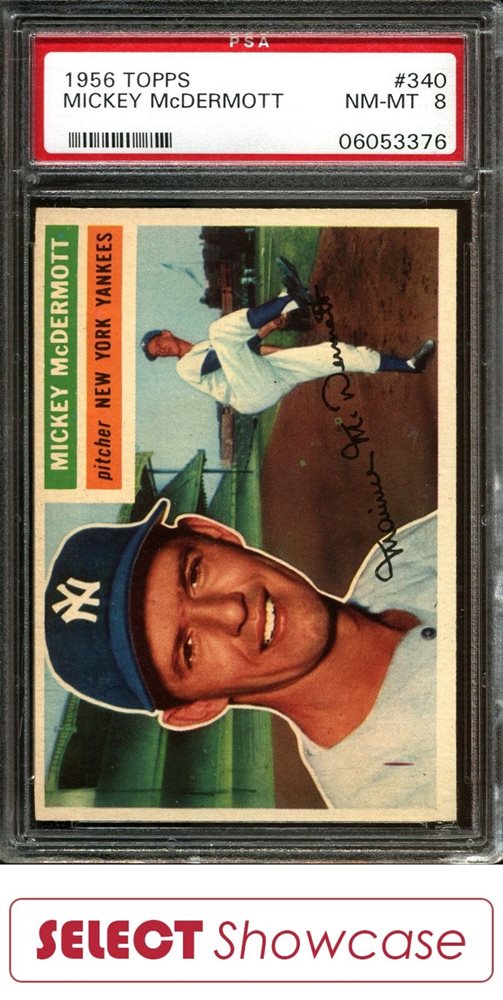 1956 TOPPS #340 MICKEY McDERMOTT YANKEES PSA 8 SET BREAK