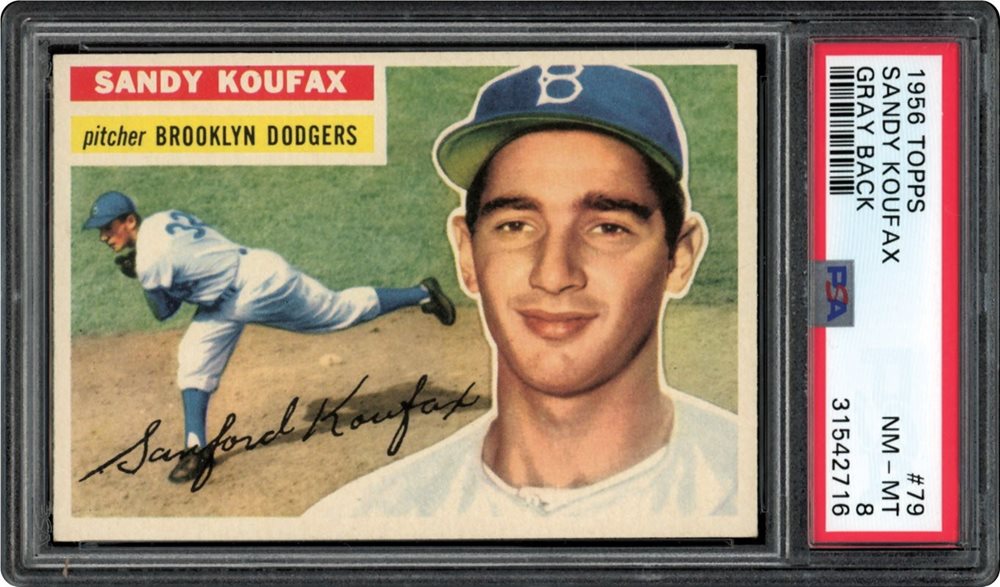 Lot # 1587: 1956 Topps #79 Sandy Koufax Gray Back PSA 8 NM-MT
