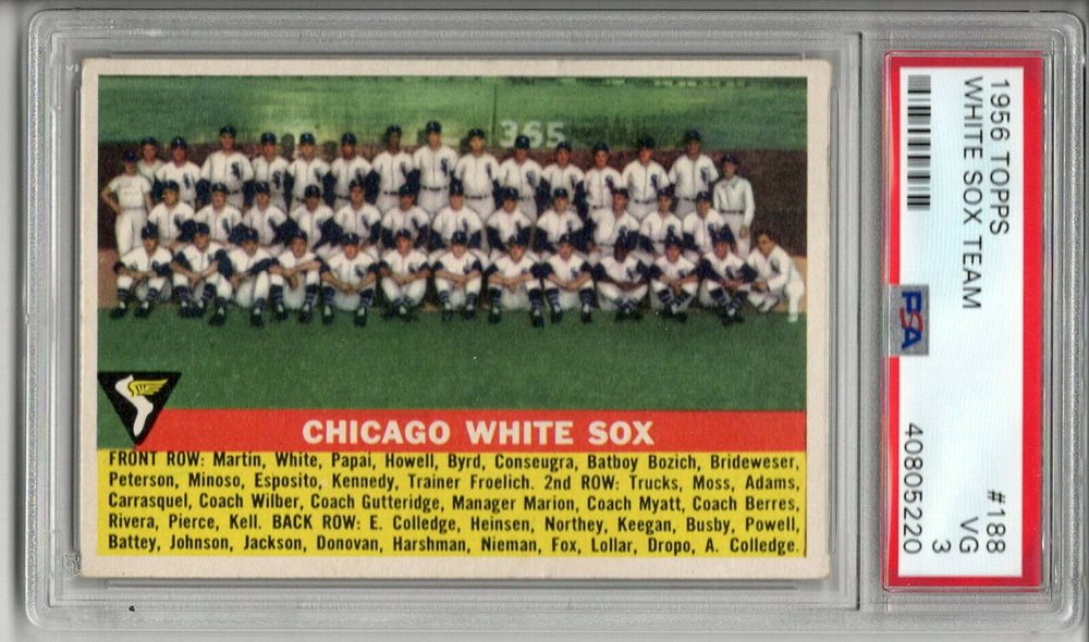 CHICAGO WHITE SOX TEAM CARD 1956 TOPPS #188 SOX'S PSA 3