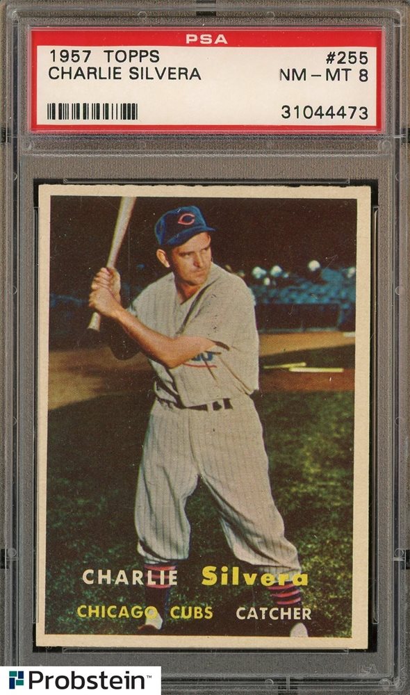 1957 Topps #255 Charlie Silvera Chicago Cubs PSA 8 NM-MT