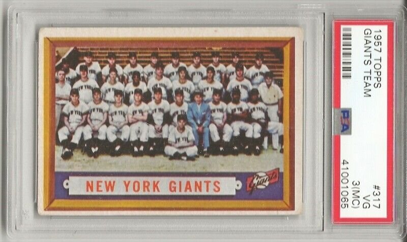 1957 TOPPS #317 NEW YORK GIANTS TEAM CARD ,PSA 3 VG (MC), WILLIE MAYS, L@@K !