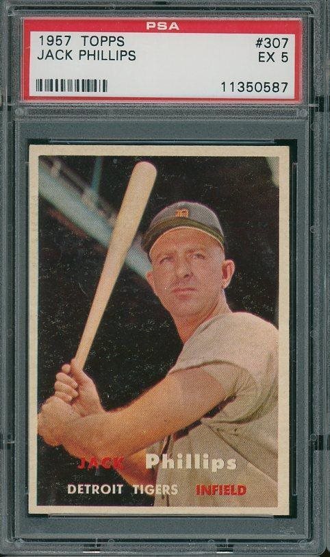 1957 Topps #307 Jack Phillips - Detroit Tigers - PSA 5