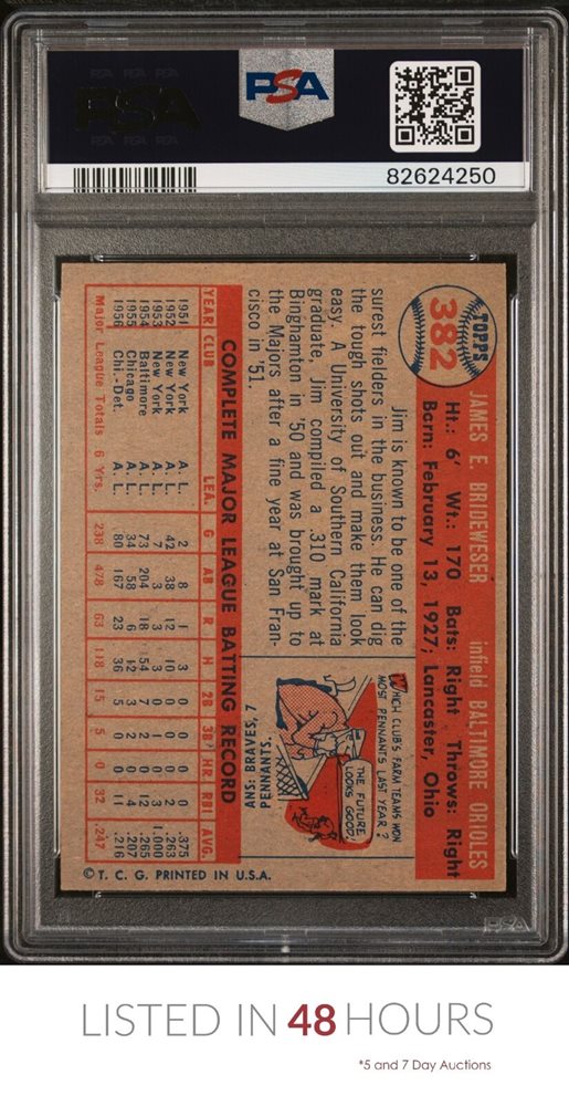 1957 TOPPS #382 JIM BRIDEWESER ORIOLES PSA 6