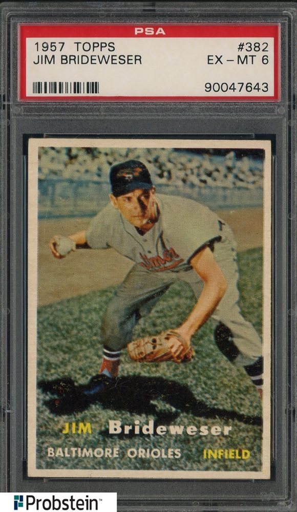 1957 Topps #382 Jim Brideweser Baltimore Orioles PSA 6 EX-MT
