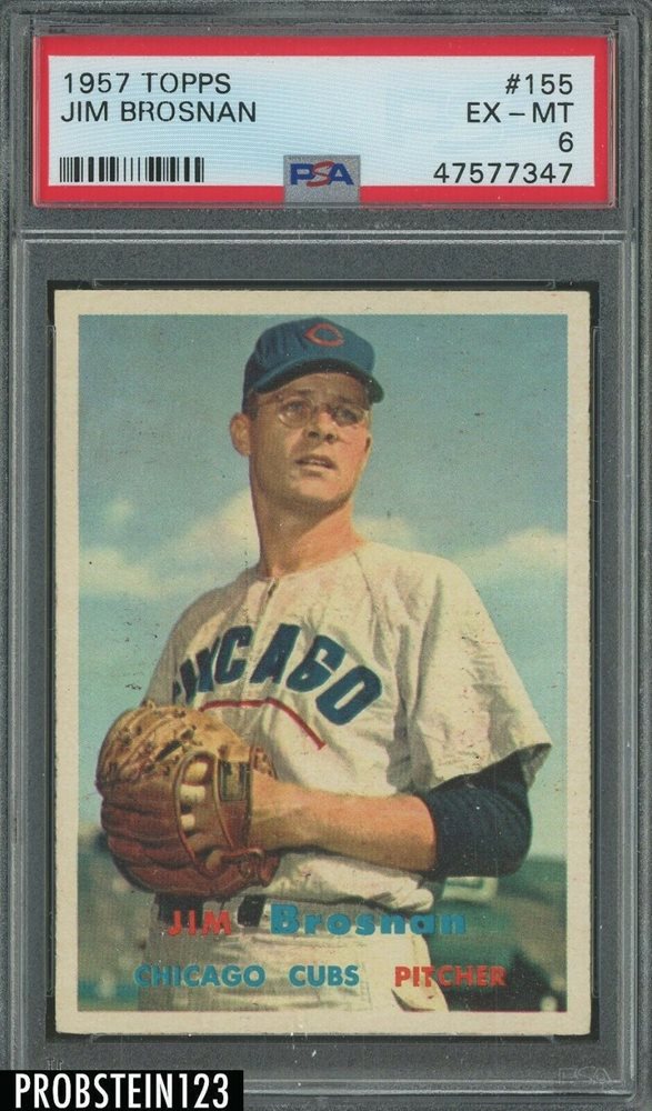 1957 Topps #155 Jim Brosnan Chicago Cubs PSA 6 EX-MT